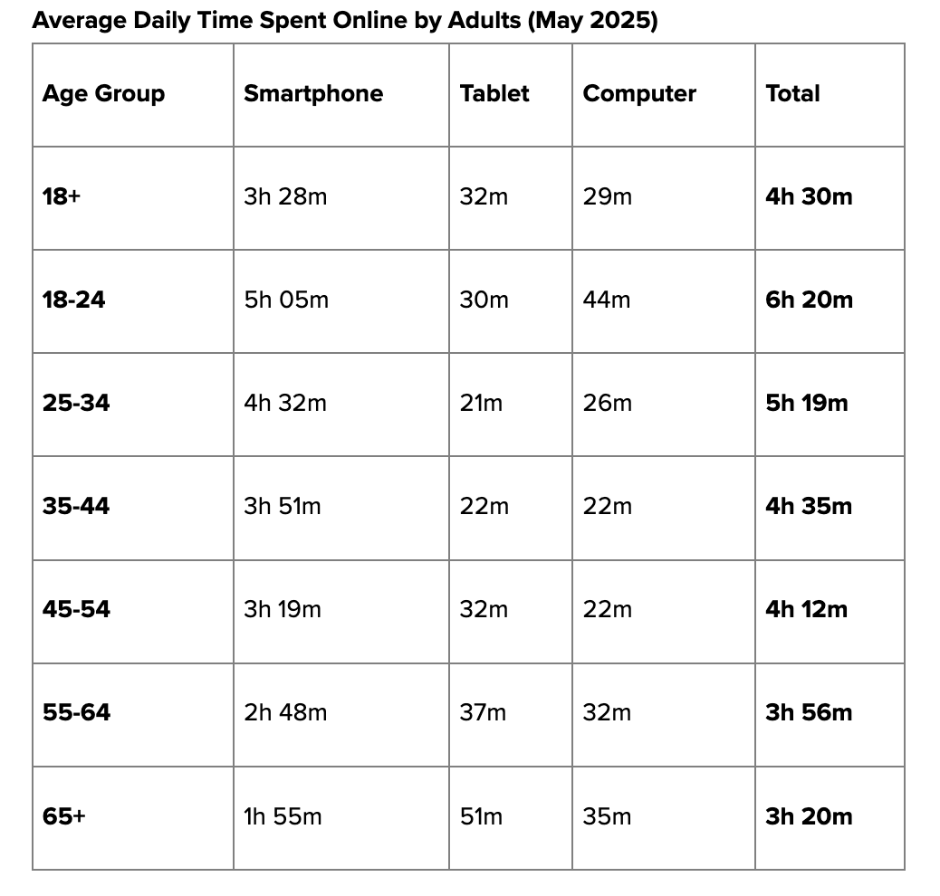 Time spent on devices by age range - I’m thankfully way below the average but I know many people maxing out over 10 hours on their smartphones a day