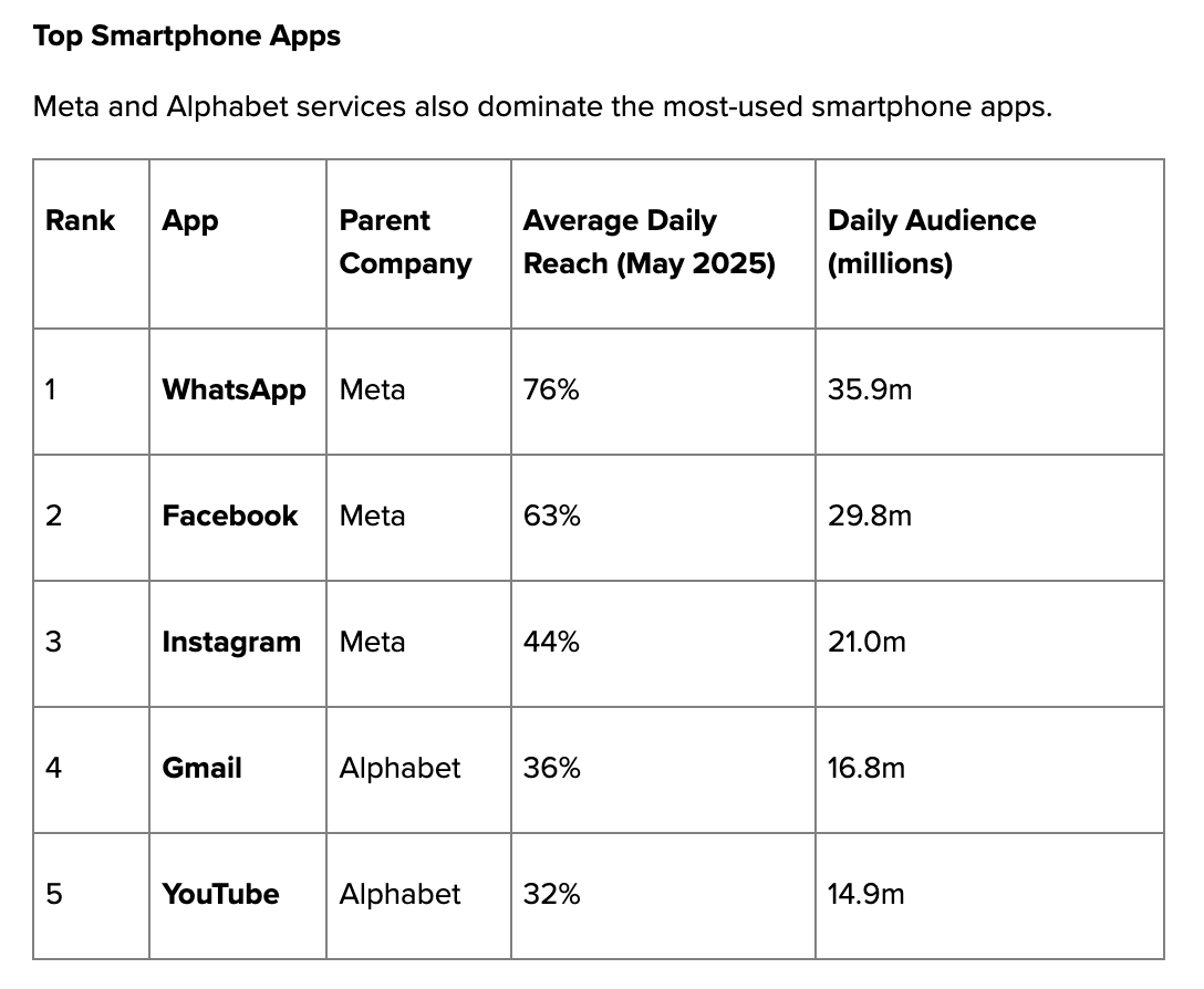 Meta & Alphabet’s app domination isn’t surprising but shows you the UK's reliance on international tech, specifically 🇺🇸 tech